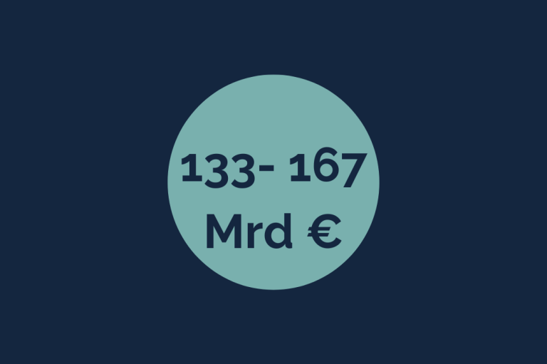 Volkswirtschaftlicher Schaden aufgrund von Produktivitätseinbußen zwischen 132,6 und 167,2 Mrd Euro.